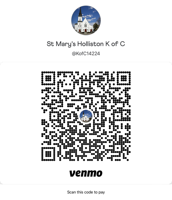 To pay by credit card, select one of the below options and proceed to payment. To pay by check, make payable to K of C Council #14224 and mail to: